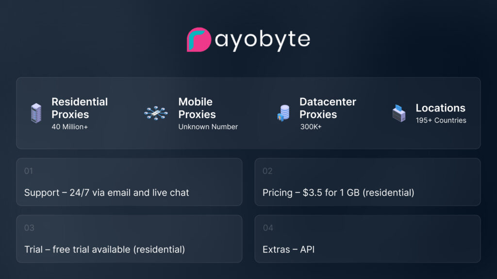 Rayobyte caters to individuals and small-medium businesses, so the prices are around the market’s average or lower if you buy more traffic.