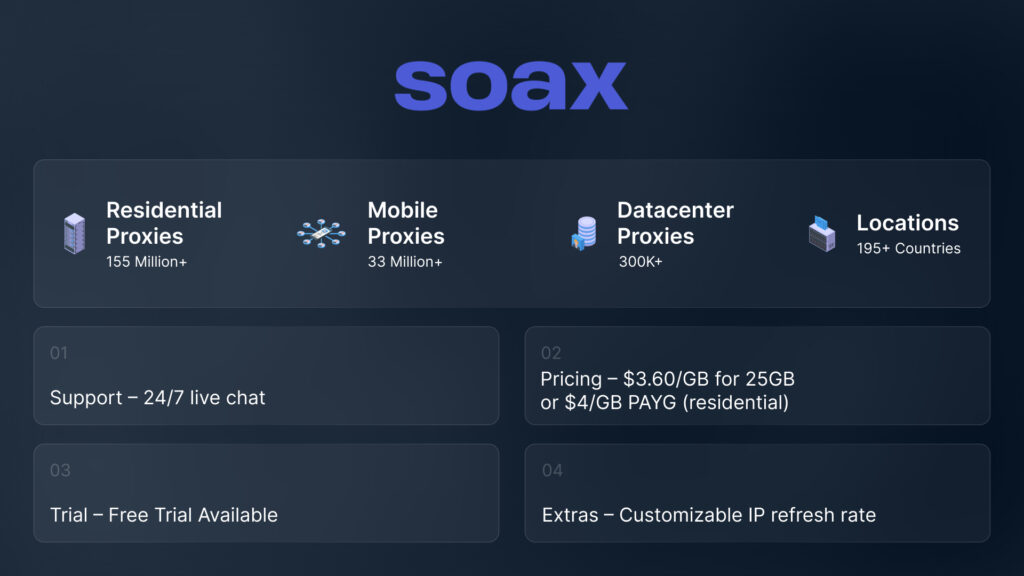 Cheap datacenter and SOCKS5 options. Their UI is easy to use but lacks serious mobile/resi IP quality.