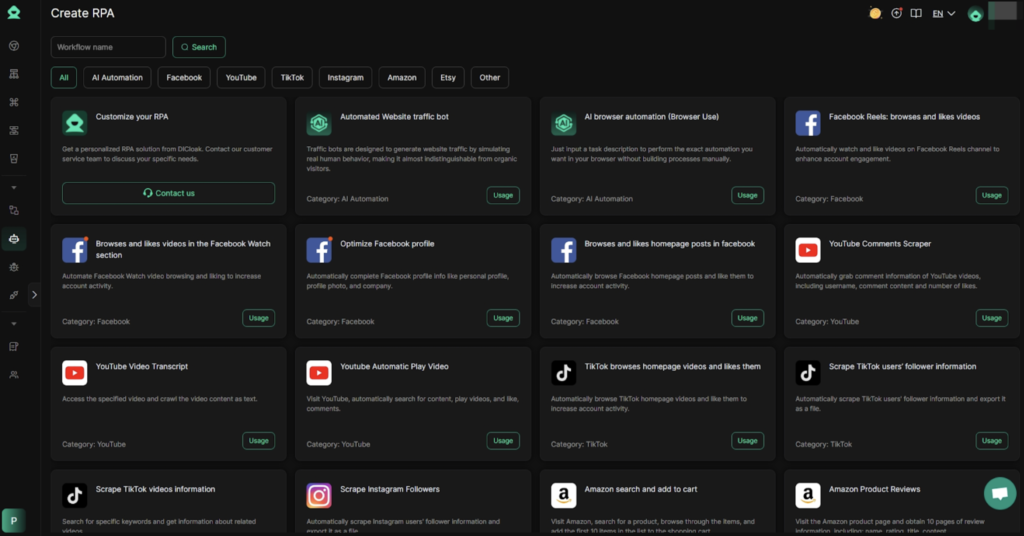 This makes it much harder for websites like Facebook, Amazon, or TikTok to detect or link your accounts. DICloak Antidetect Browser also supports automation, proxy integration, and team collaboration, making it ideal for both solo users and big teams.