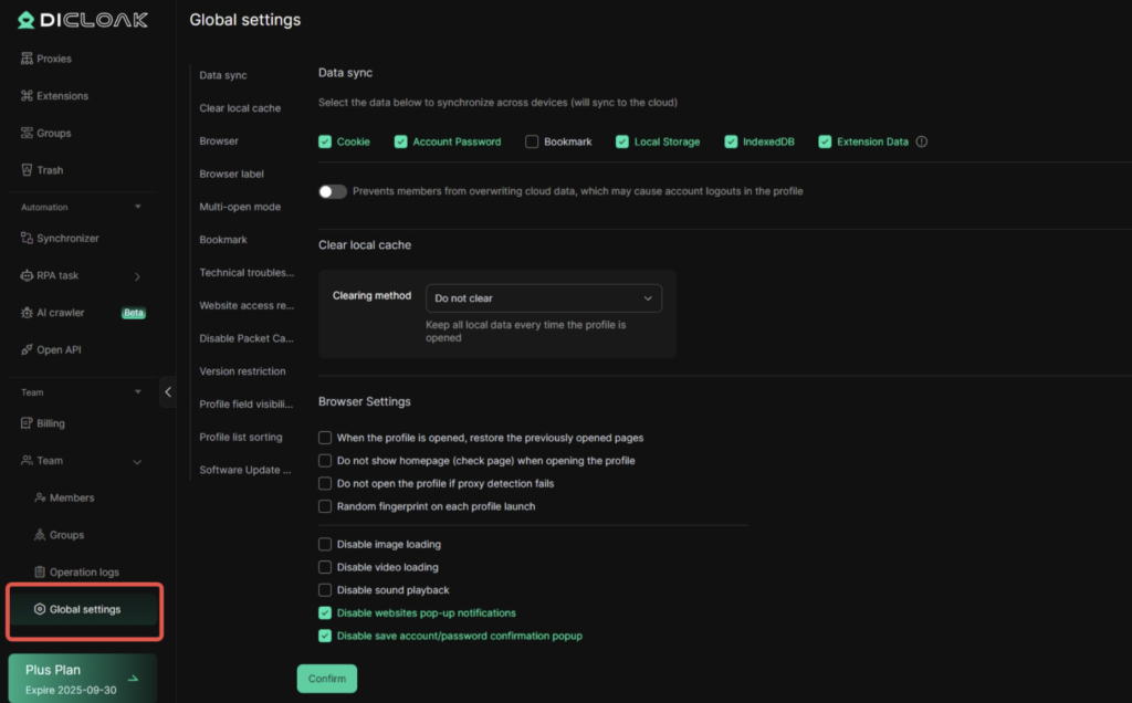 - If you want to explore more options, head over to the Global Settings section, where you can fine-tune preferences. Once everything looks right, click “Confirm”