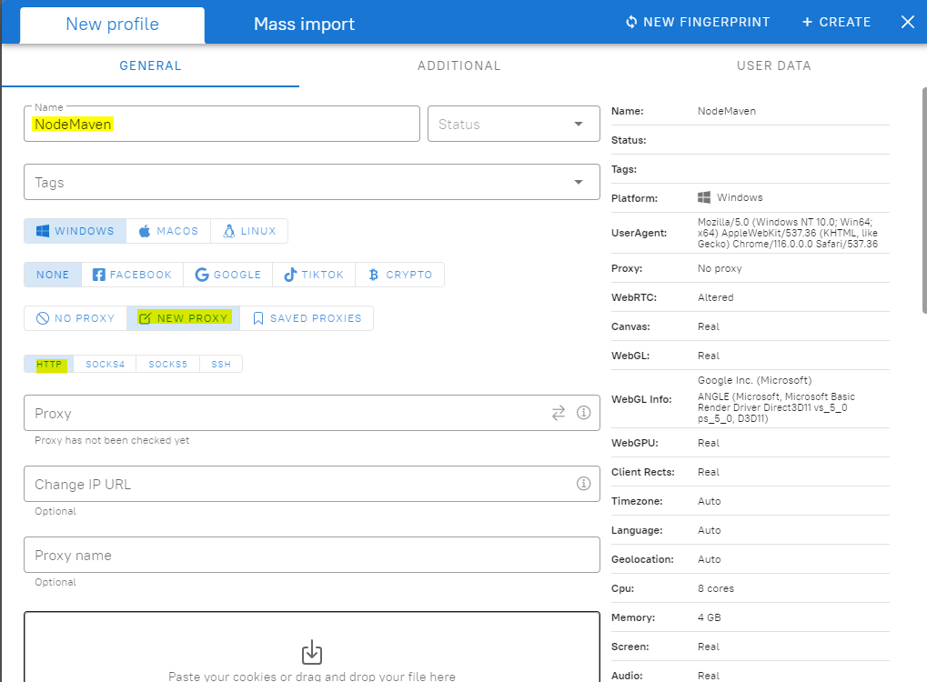 To set up NodeMaven proxies in Dolphin Anty, log into Dolphin Anty and create a new profile. In the proxy settings, simply copy the host, port, username, and password from your NodeMaven Proxy Setup section and paste them into the corresponding fields in Dolphin Anty. This will link the proxy to your profile, ensuring secure and anonymous browsing.