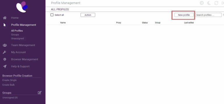 To start using our proxies in Incogniton, navigate to “Profile Management” and click “New profile”.