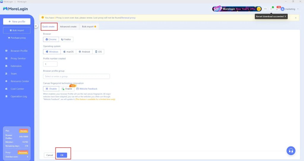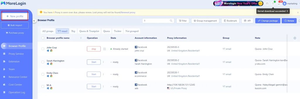 To use our proxies in MoreLogin, first start by creating a browser profile.