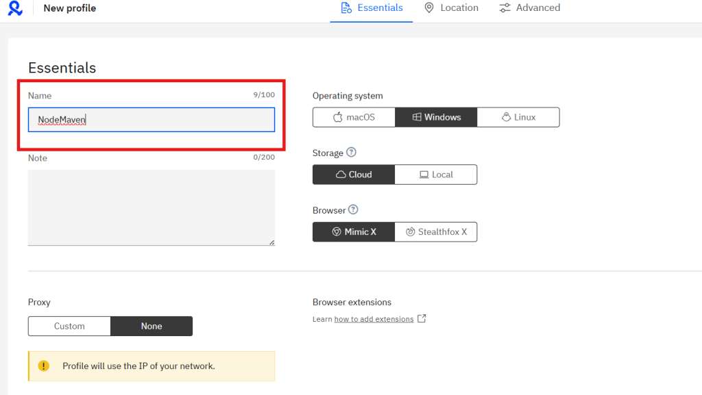 To use our proxies in Multilogin X, start by creating a profile by clicking “New profile”.