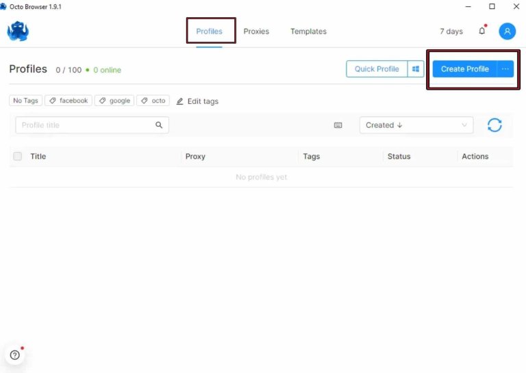3. Next, go to “Profiles” then click “Create Profile”, to set up a new profile.