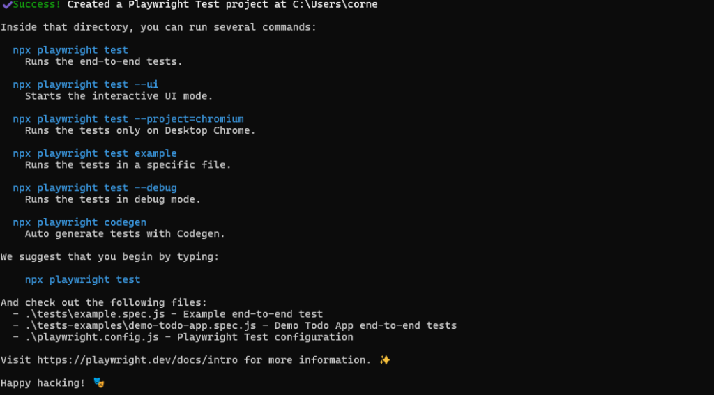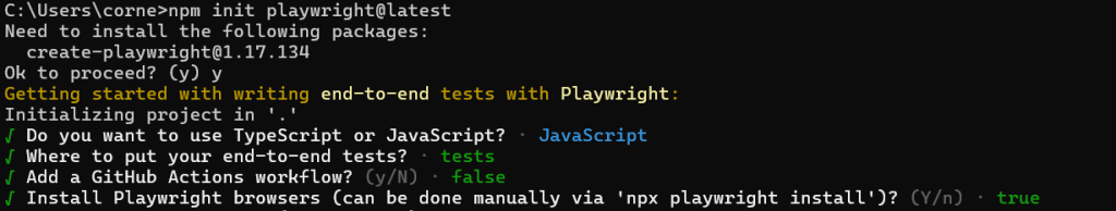 2. Follow the prompts to configure the project, and ensure browsers are installed when prompted. This is an example but you can make your own choices: