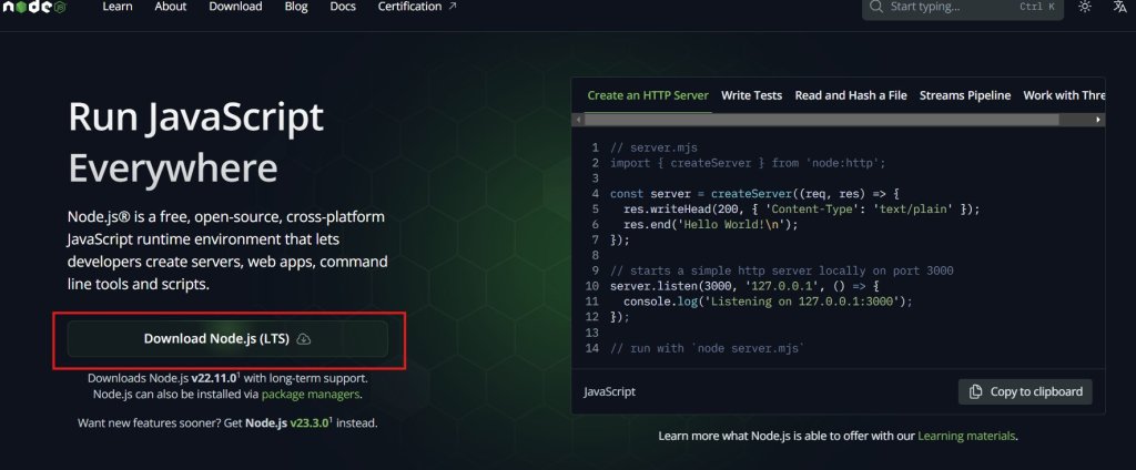 Before anything, check if Node.js is installed: Open a terminal (Command Prompt or shell) and type the following command: