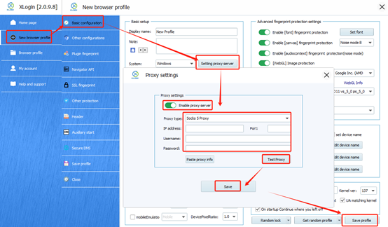 1. Fill in a display name and configure the browser fingerprint