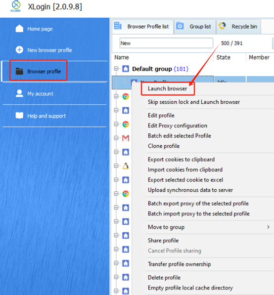 3. Click “New browser profile” to create the profile.